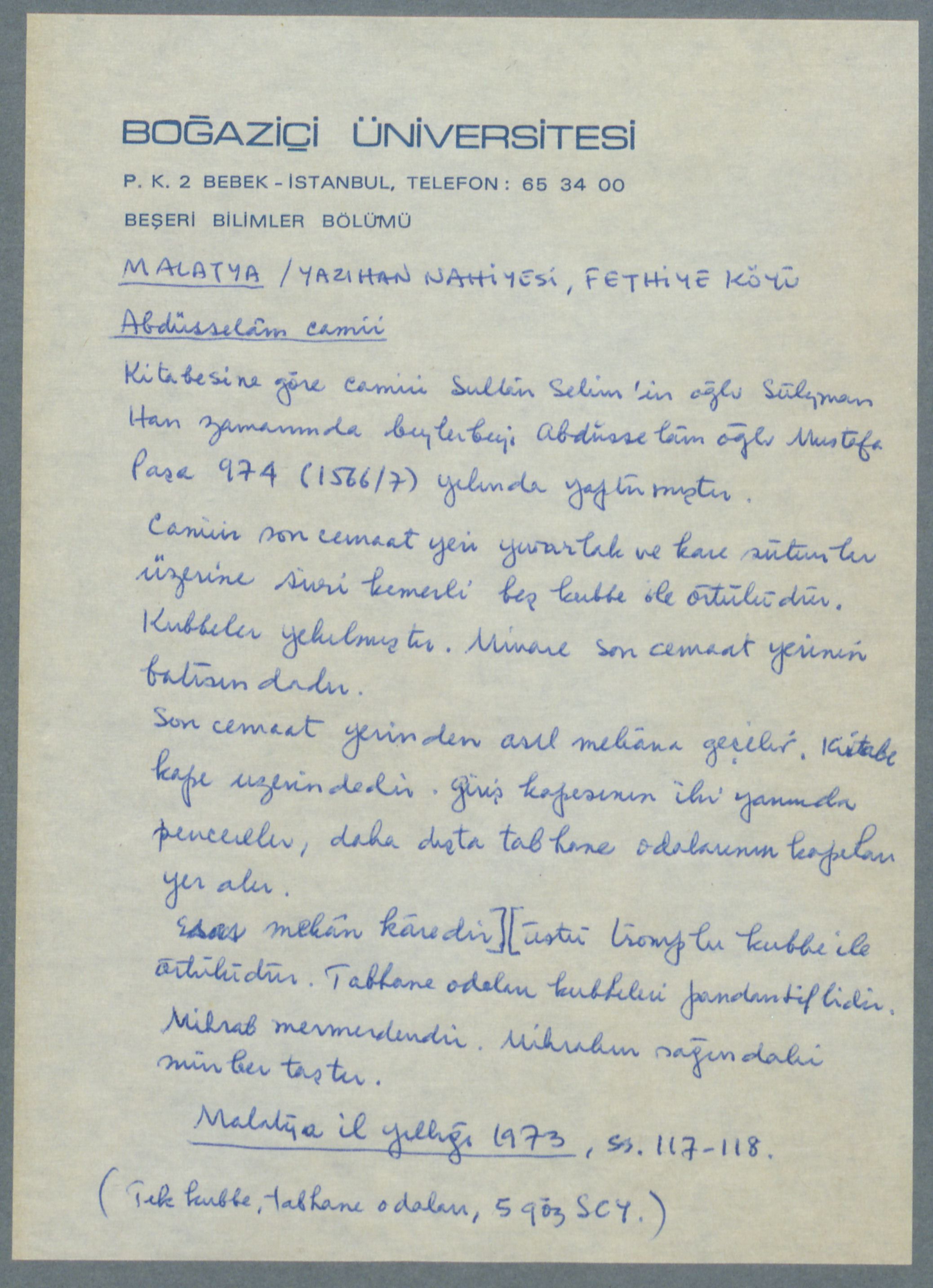 Abdüsselam Camii, Fethiye/Malatya, 1566-7 (H.974)