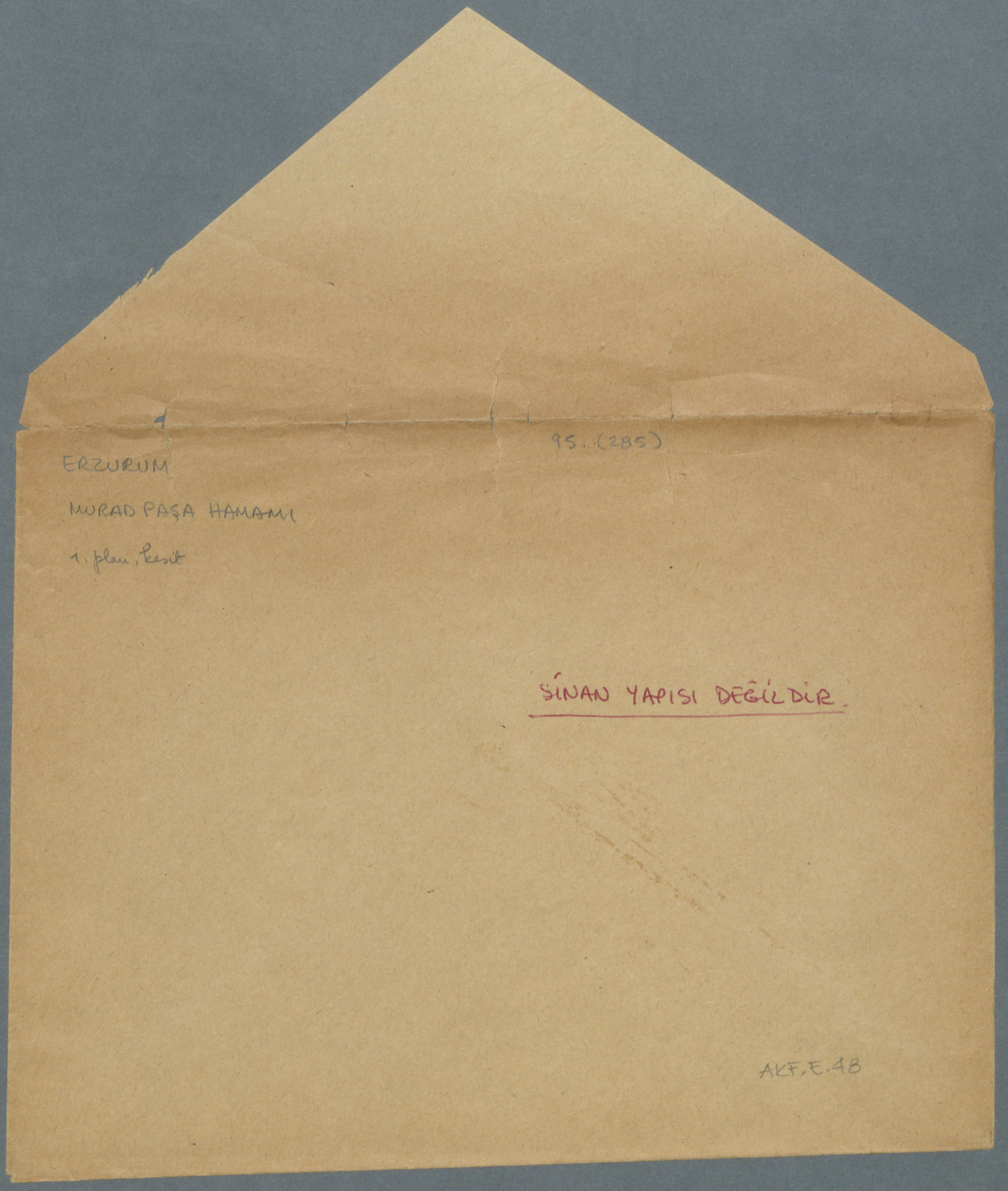 Çekmece 1 içerisinde üstünde "Erzurum Murad Paşa Hamamı" yazılı 1 sayfa el yazılı, 1 planlı zarf