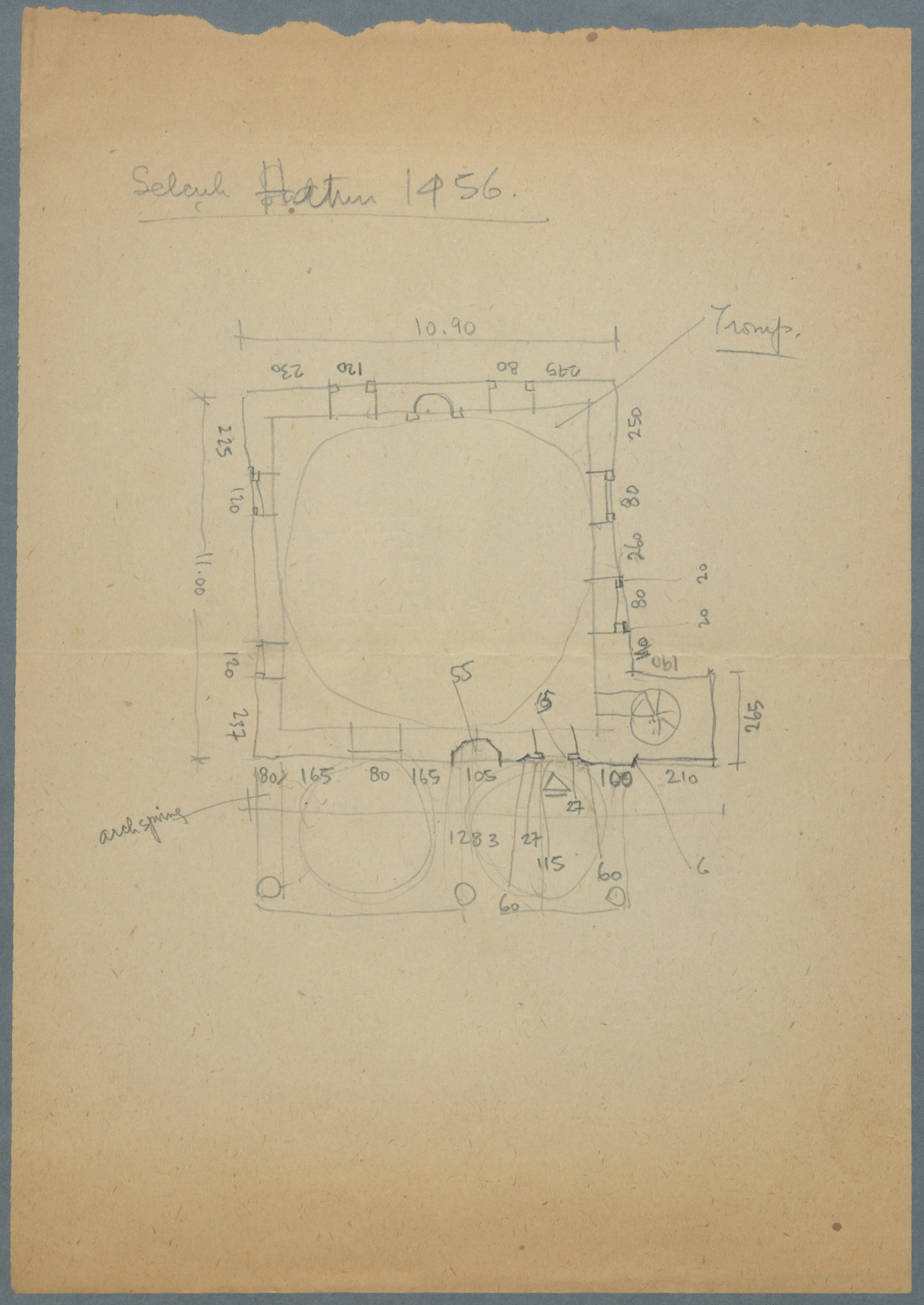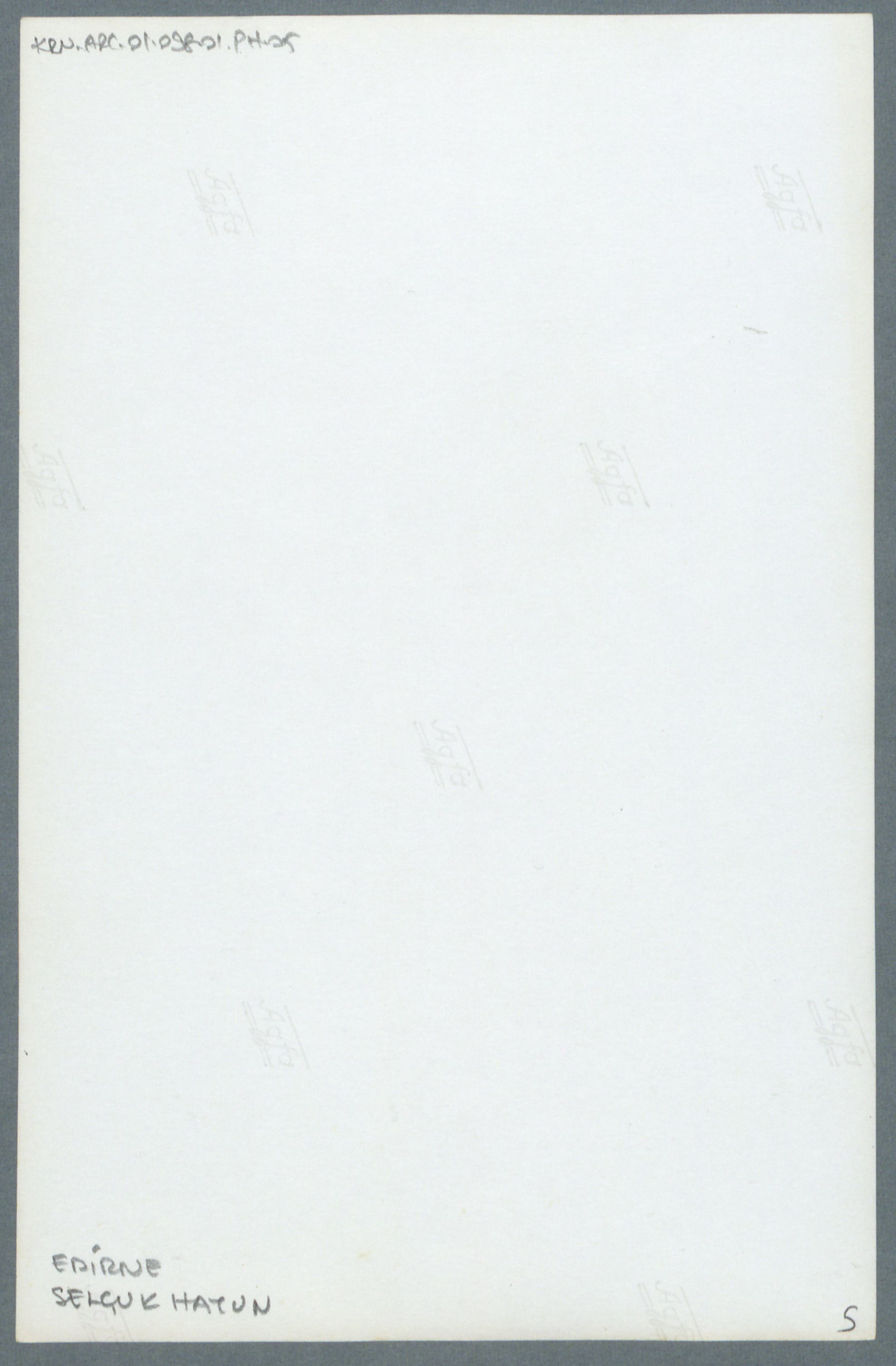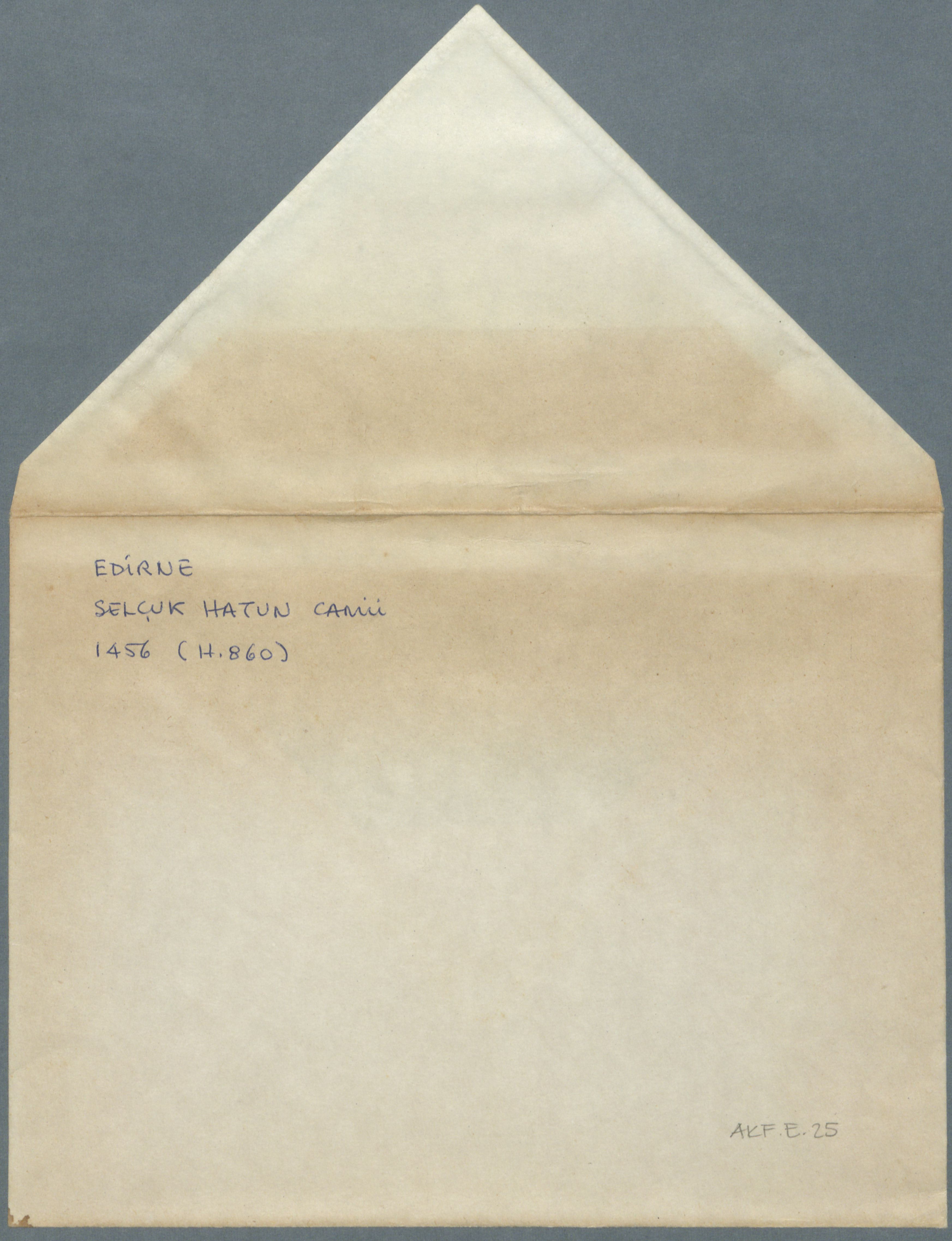 Çekmece 1 içerisinde üstünde "Edirne Selçuk Hatun Camii 1456 (H.860)" yazılı 5 fotoğraflı, 1 çizimli zarf