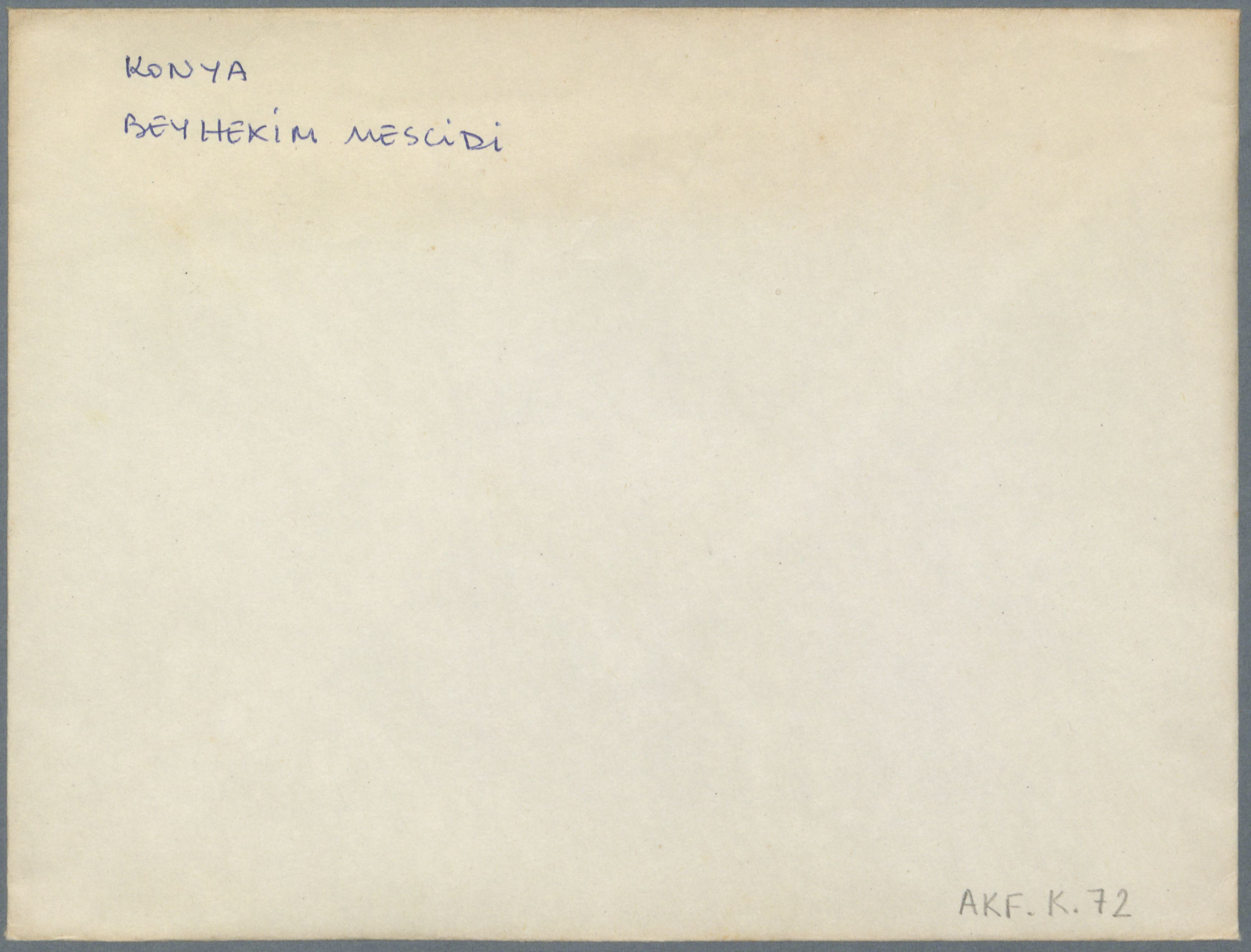 Çekmece 2 içerisinde üstünde "Konya Beyhekim Mescidi" yazılı 1 fotoğraflı zarf