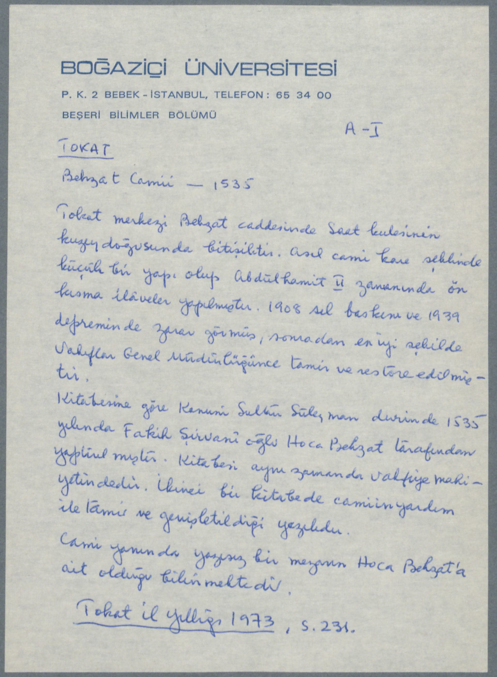 Behzat Camii, Tokat, 1535/6 (H.942)